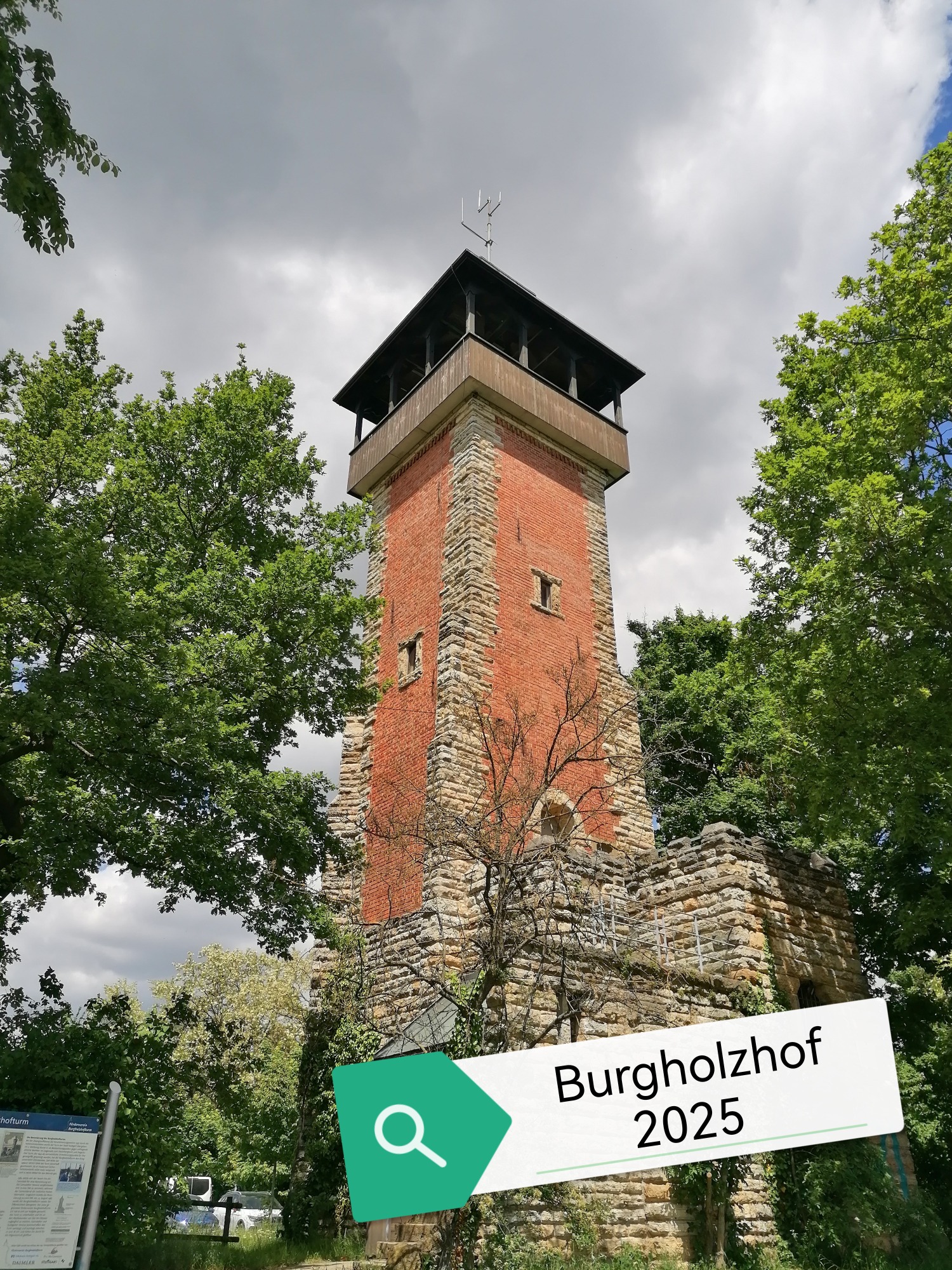 Der Aussichtsturm Burgholzhof wurde 1891 errichtet und steht auf dem höchsten Punkt Bad Cannstatts. Er hat eine Höhe von 27m und befindet sich eine Aussichtsplattform, die bei gutem Wetter einen Blick bis zur Ostalb bietet. Der Turm wird von Mai bis Oktober an den Wochenenden und Feiertagen von verschiedenen Vereinen bewirtschaftet. Es gibt einfache Speisen und Getränke (Selbstbedienung), die an Biertischgarnituren vor dem Turm mit Blick über die Weinberge und das Neckartal verzehrt werden können.
